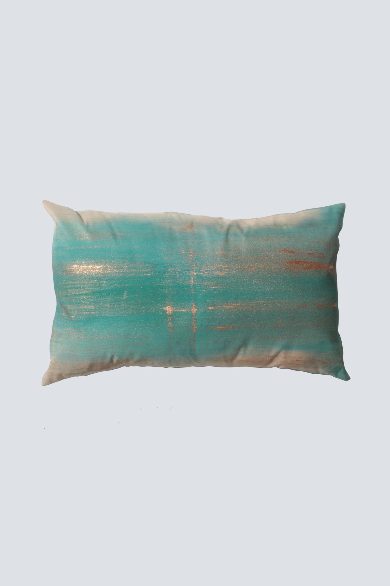 Cette housse coussin de la série "Rothko" beige, vert et or est complètement réalisé à la main.